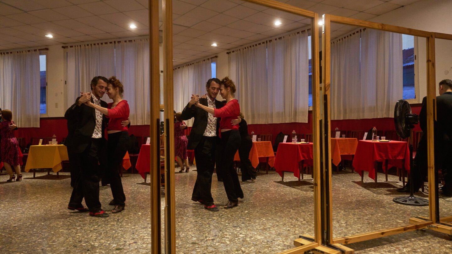 BUENOS AIRES (AP) — At a dance hall in the heart of Buenos Aires, 14 men in elegant dark suits sat at separate tables while across the room, 14 women in dresses and high heels waited to be asked for a dance.